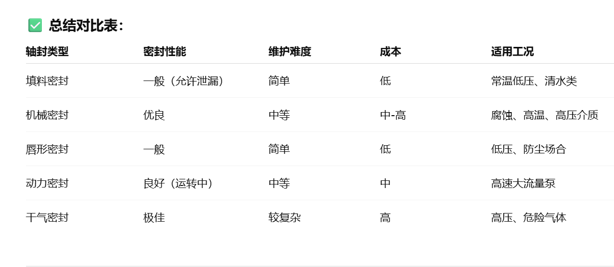 立式泵的轴封形式主要取决于输送介质的性质(是否腐蚀、是否含颗粒、是否易挥发)以及使用工况(温度、压力、转速等)。下面是常见的几种立式泵轴封形式及其特点: